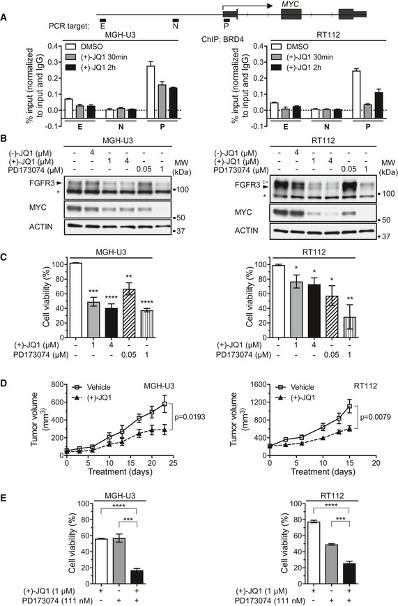 The MYC accumulation induced by activated FGFR3 confers sensitivity to BET bromodomain inhibitors in FGFR3‐dependent bladder cancer cells in vitro and in vivo. EMBO Mol Med. 2018 Apr;10(4). pii: e8163. |